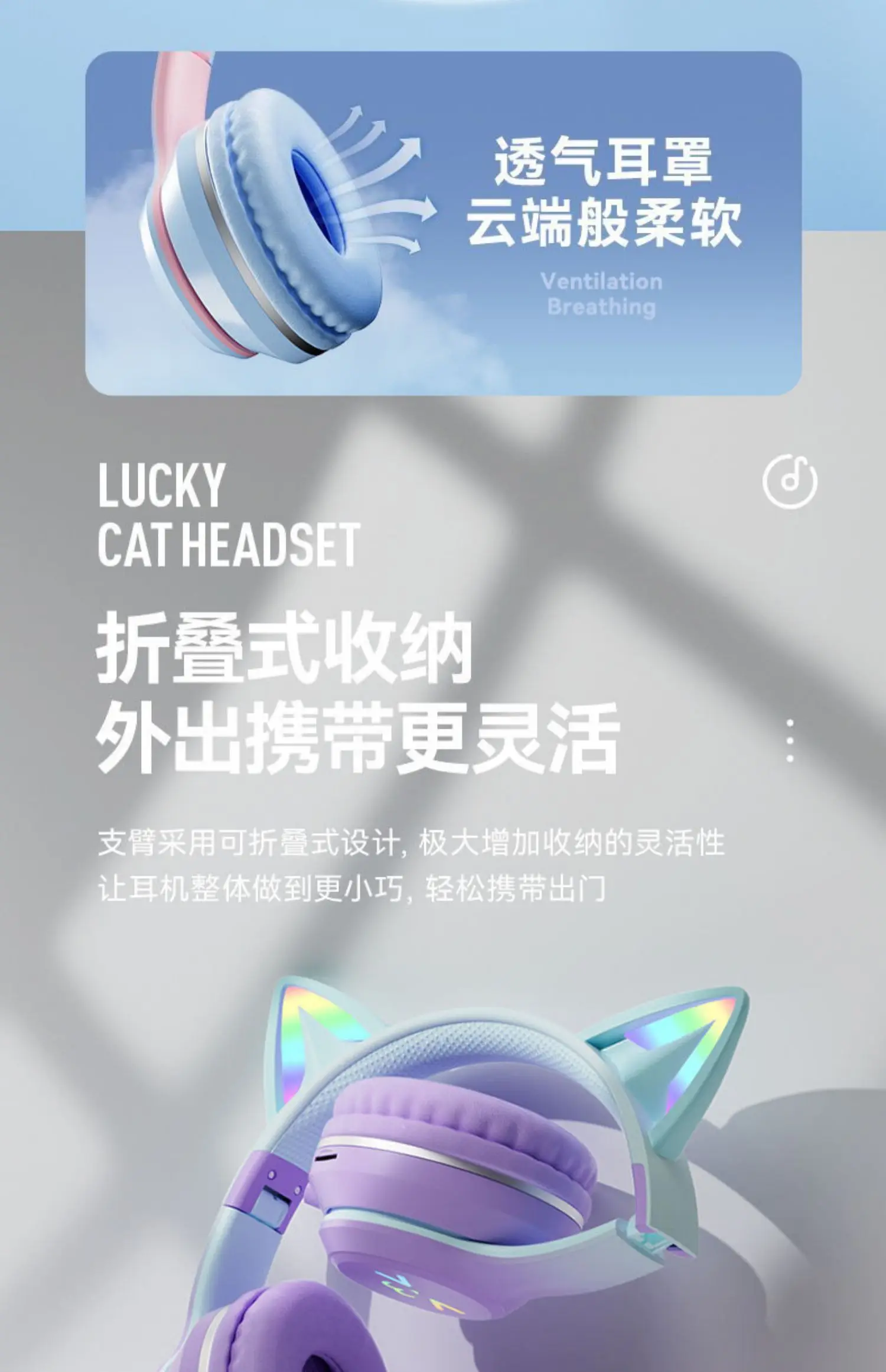 Cat ear headphones, RGB light and smiley face, gradient design TWS headphones, new pink headphones and an ideal gift
